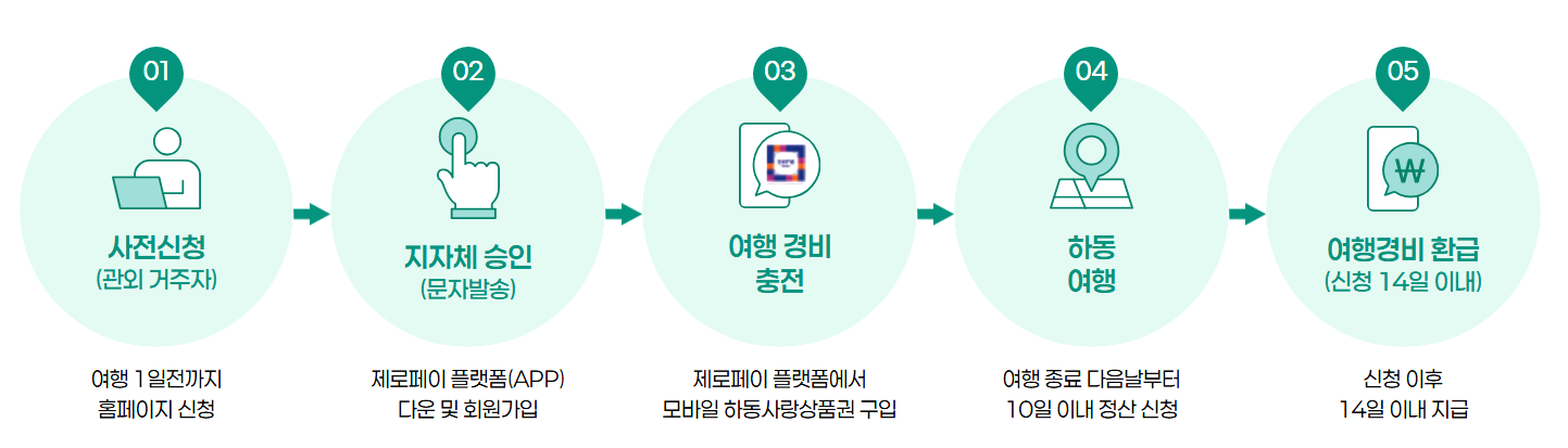 하동군 외부에 거주하시는 분이라면 누구나 신청 가능하며, 제로페이 모바일 하동사랑상품권으로 결제하신 금액의 50%를 환급받는 구조로 운영됩니다. 혼자 여행하시는 경우 최대 10만 원, 2인 이상으로 구성된 팀은 최대 20만 원까지 지원받으실 수 있으니 가족이나 친구분들과 함께 방문하시면 훨씬 더 알차게 여행을 만끽하실 수 있습니다.