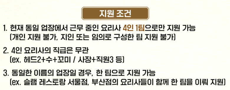 즉, 개인의 스타성보다는 팀워크, 주방 호흡, 시스템 운영 능력까지 평가 대상이 됩니다.