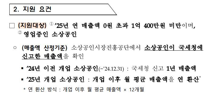 2026년 기준으로 소상공인 경영안정바우처는 연 매출 1억 400만 원 미만 사업자를 대상으로 합니다.
